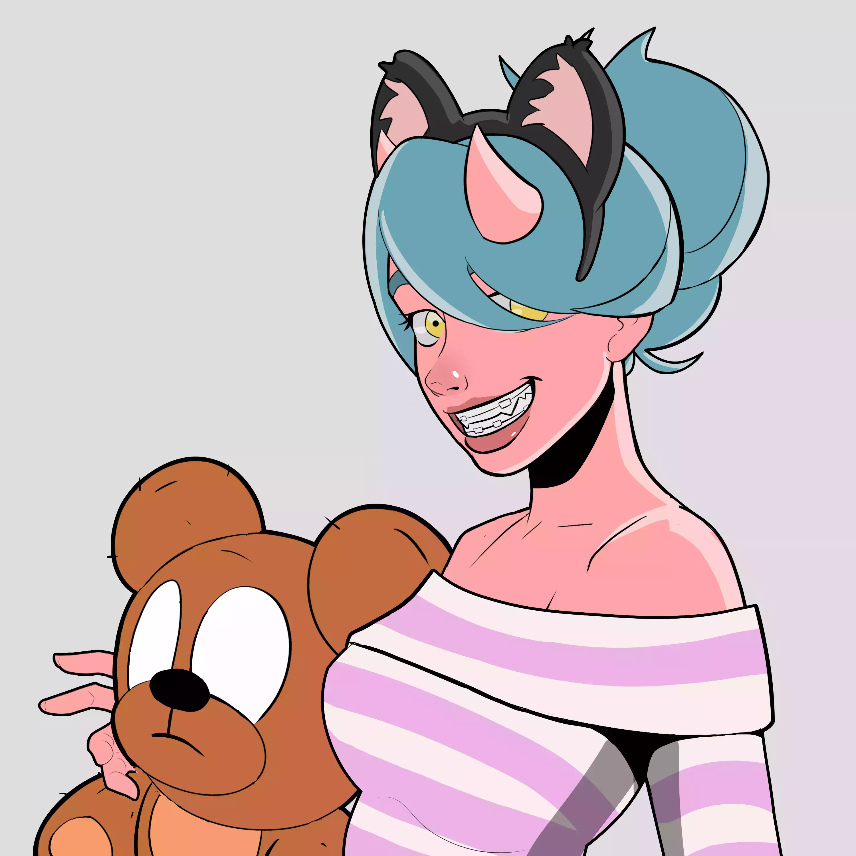 Hair Bun + Black Cat Ears (2.55%)