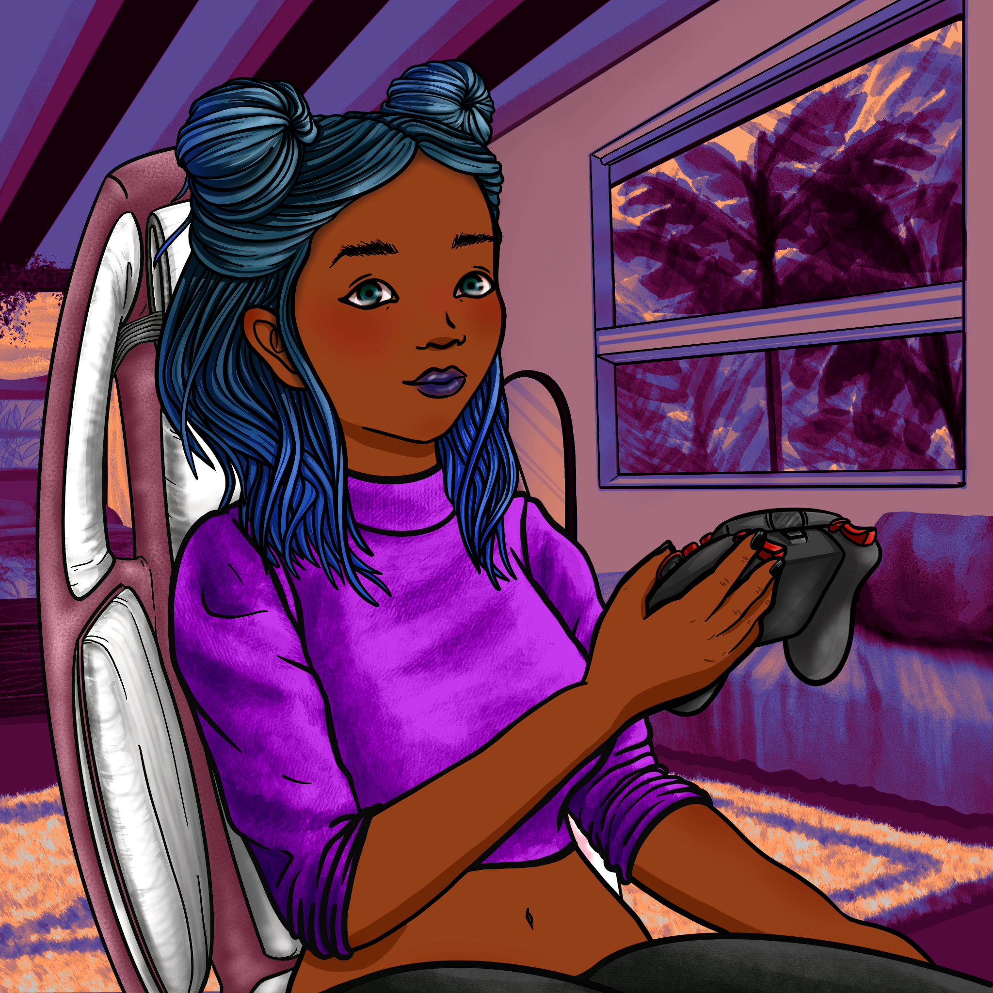 Blue Half Down Space Buns (1.31%)